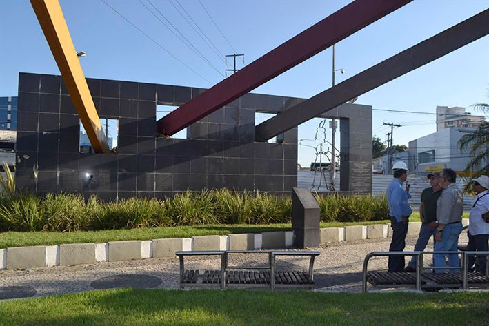 O trabalho será feito a partir do desligamento da rede elétrica que alimenta os holofotes e os postes da praça onde fica o monumento e vai envolver bancos, árvores e a estrutura metálica.
